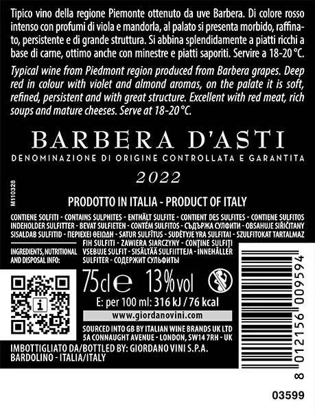 Vino GIORDANO Rosso Secco Barbera d'Asti DOCG 2022 (ITA)
