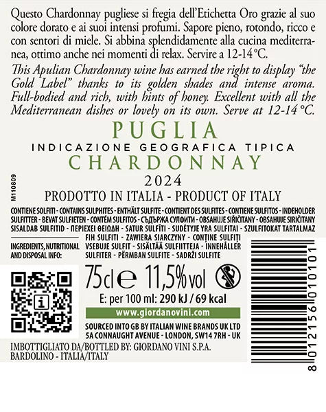 Vino GIORDANO Bianco secco "Esclusivo Etichetta Oro" Chardonnay Puglia IGT (ITA) 2024